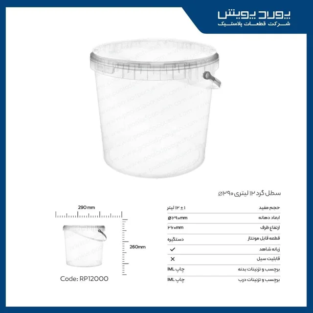 با سطل گرد دستهدار پولاد پویش شفاف 12 لیتری، راحتی و کیفیت را به خانه خود