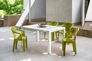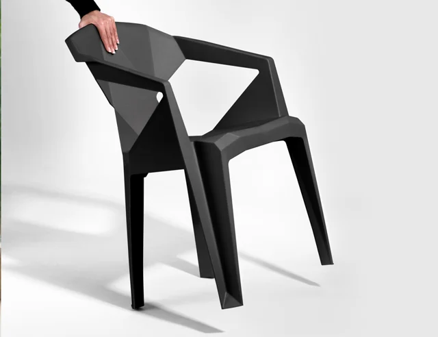 صندلی دسته دار پلیمری یک تکه از جنس پلی پروپیلن تقویت شده با مواد معدنی؛ در سه