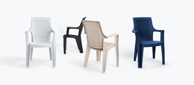 صندلی دسته دار پلیمری یک تکه از جنس پلی پروپیلن تقویت شده با مواد معدنی؛ در سه طرح پشتی متفاوت؛ سطح ظاهری با جلوه مات؛ رعایت اصول ارگونومی؛ قابل ارائه در ۹ رنگ؛ مقاوم در برابر اشعه ماوراء بنفش، نشیمن عمیق و تکیه گاه بلند.