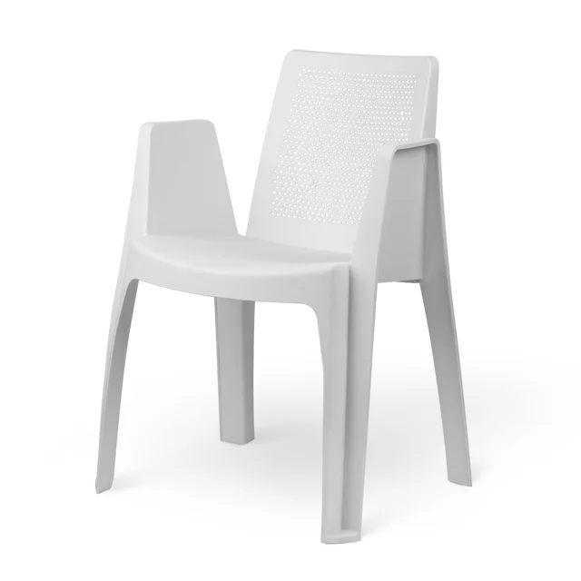 صندلی دسته دار پلیمری یک تکه از جنس پلی پروپیلن تقویت شده با مواد معدنی؛ در دو طرح پشتی متفاوت؛ سطح ظاهری با جلوه مات؛ رعایت اصول ارگونومی؛ قابل ارائه در ۹ رنگ؛ مقاوم در برابر اشعه ماوراء بنفش، نشیمن عمیق و تکیه گاه بلند.