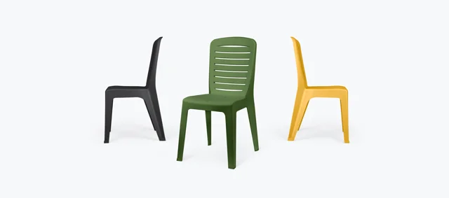 صندلی پلیمری یک تکه از جنس پلی پروپیلن تقویت شده با مواد معدنی؛ در دو طرح پشتی متفاوت؛ سطح ظاهری با جلوه مات؛ رعایت اصول ارگونومی؛ قابل ارائه در ۹ رنگ؛ مقاوم در برابر اشعه ماوراء بنفش، نشیمن عمیق و تکیه گاه بلند.