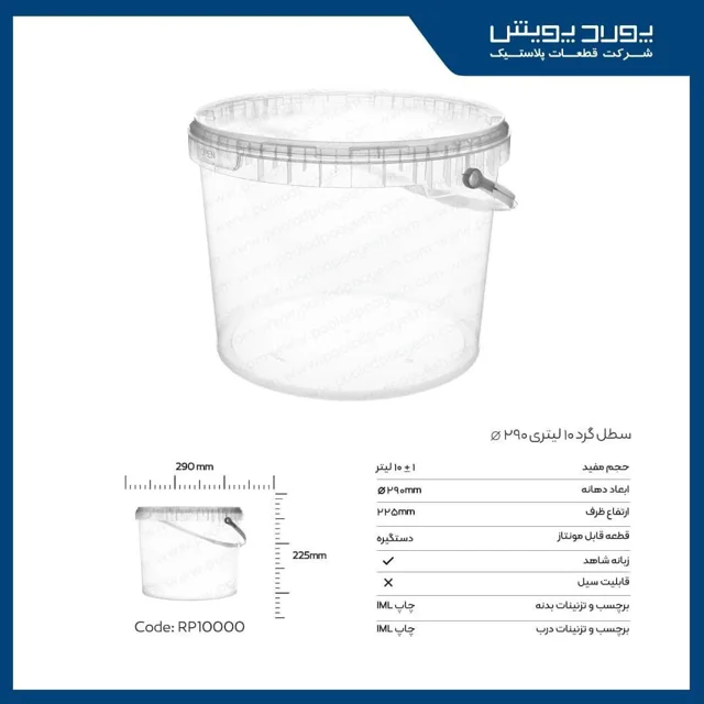با سطل گرد دستهدار پولاد پویش شفاف 10 لیتری، نظم و سهولت را به خانهتان