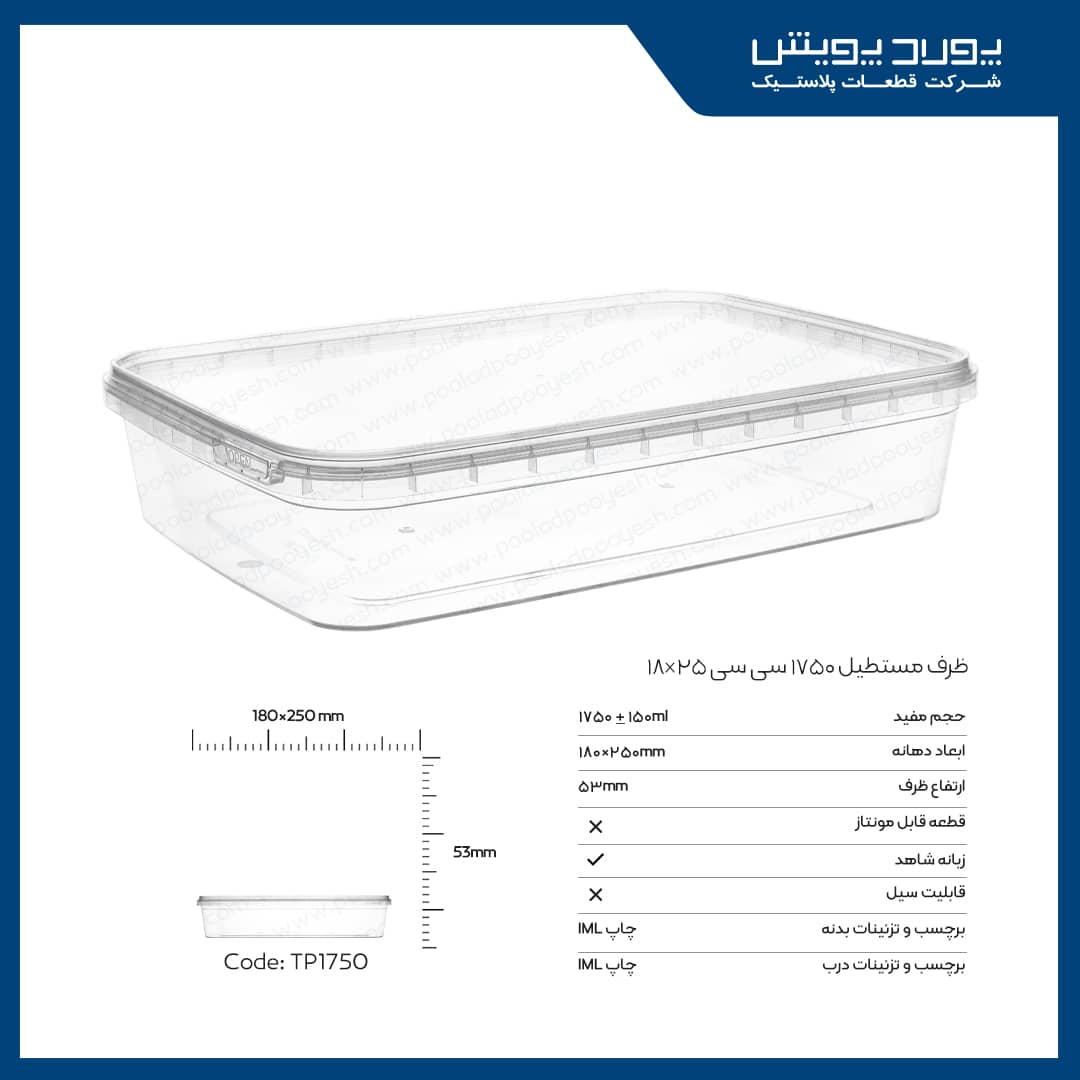 آشپزی و سازماندهی با ظرف مستطیل پولاد پویش شفاف 1750 سی‌سی (بسته 120 عددی) به اوج می‌رسد! این ظروف با ظرفیت بالا و شفافیت استثنایی، انتخابی ایده‌آل برای نگهداری مواد غذایی تازه و مرتب‌سازی در آشپزخانه شما هستند. با دوام و قابل استفاده در فریزر و مایکروویو، تجربه‌ای جدید از راحتی و صرفه‌جویی را تجربه کنید. بهترین همراه برای تهیه و نگهداری مواد غذایی!