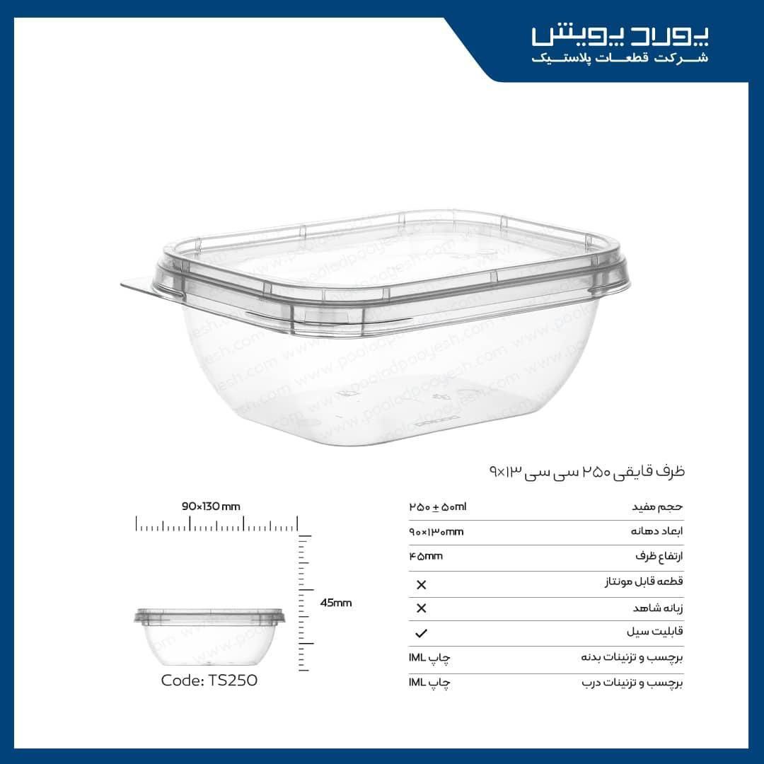 • حجم ظرف: 250 سی سی