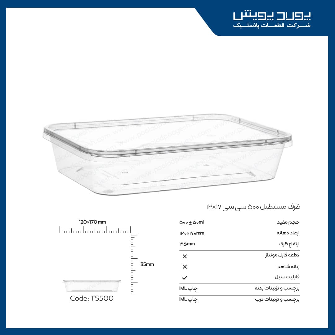 ظرف مستطیل پولاد پویش شفاف 500 سی سی با بستهبندی 150 عددی، انتخابی ایدهآل برای بستهبندی انواع غذاهاست. شفافیت بالا برای نمایش محتوا، کیفیت بینظیر و مقاومت عالی این ظروف، آنها را به گزینهای مناسب برای رستورانها و کترینگها تبدیل کرده است. با خرید این محصول، کیفیت و کارایی را تجربه کنید!