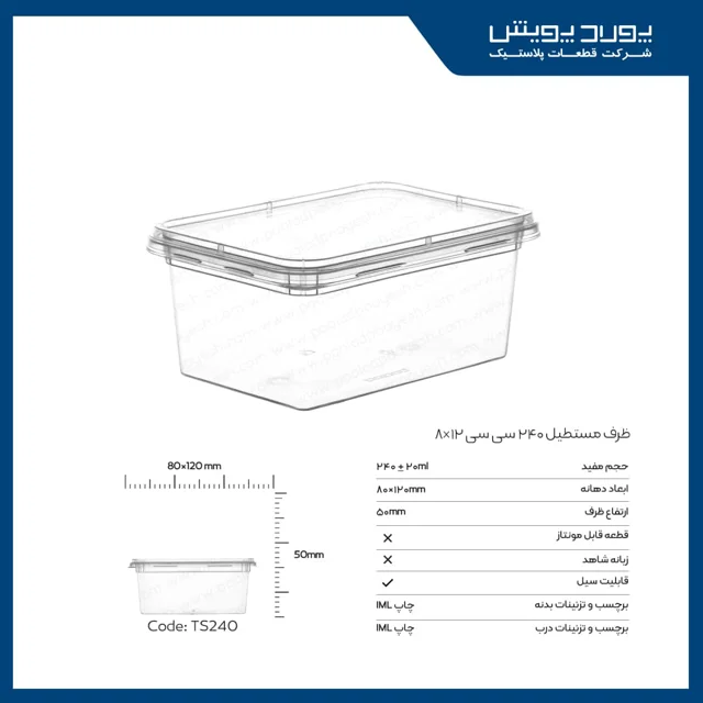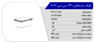 ظرف مستطیل 240 سی سی پولاد پویش یک ظرف با ظرفیت مناسب و طراحی مستطیلی است که از جنس با کیفیت پولاد ساخته شده و برای نگهداری انواع مواد غذایی مناسب است. این ظرف سبک، مقاوم و کاربردی بوده و برای استفاده روزمره بسیار مناسب است.