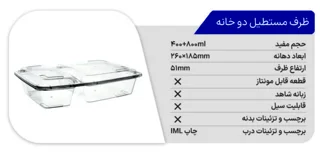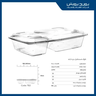 ظرف مستطیل دوخانه پولاد پویش با طراحی کاربردی و دو خانه جداگانه مناسب برای نگهداری و حمل انواع خوراکیها است. ساختهشده از مواد با کیفیت و مقاوم، این ظرف دوام بالا و راحتی استفاده را تضمین میکند، گزینهای ایدهآل برای استفاده روزمره و سفر.