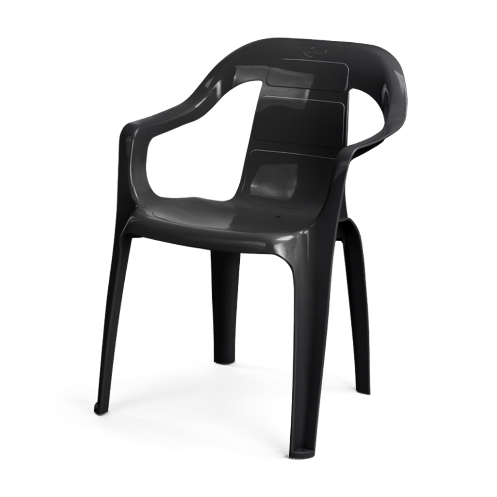 صندلی دسته دار پلیمری یک تکه از جنس پلی پروپیلن تقویت شده با مواد معدنی؛ سطح ظاهری با جلوه براق؛ رعایت اصول ارگونومی؛ قابل ارائه در 4 رنگ؛ مقاوم در برابر اشعه ماوراء بنفش، نشیمن عمیق و راحت.
