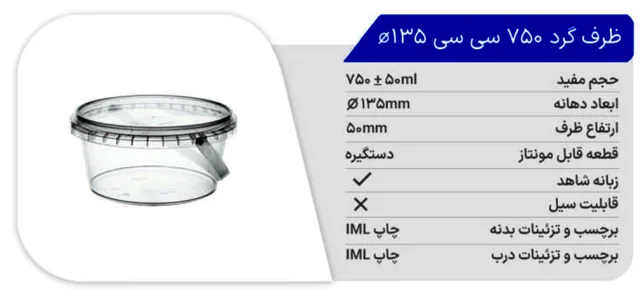 سطل گرد 750 سی سی دسته دار پولاد پویش، ساخته شده از جنس مقاوم و با کیفیت، مناسب برای مصارف روزمره و صنعتی. طراحی ارگونومیک با دسته محکم برای حمل آسان و حجم مناسب جهت ذخیرهسازی بهینه مایعات و مواد مختلف. دوام بالا و استفاده کاربری ساده.
